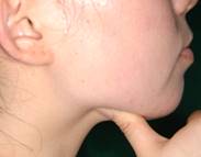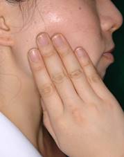 ・下あごで前後方向の中央部分の内側を親指で押し上げるようにマッサージします。