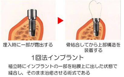 インプラントの術式には1回法と2回法の2つがあります。